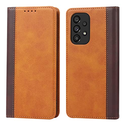Galaxy A53 5G / Galaxy A53 ケース 手帳型 SC-53C 耐衝撃 SCG15 ドコモ SC53C カバー Samsung マグネット式 カード収納 レザー イエロー+ブラウン 送料無料