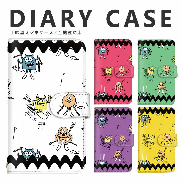 iPhone SE3 モンスター monster illustration かわいい キャラクター 全機種対応 手帳型タイプ スマホケース 手帳型 Google Pixel 8 Pro isai BASIO シンプルスマホ Xiaomi 13T XIG04 Redmi 12 5G Libero らくらくフォン Rakuten Pixel 8a Galaxy S25 AQUOS wish4