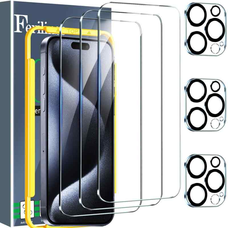 Ferilinso4PackScreenProtectorfor6.1inchProwith4PackTemperedGlassCameraLensProtectorPhoneCaseFriendlyUltra