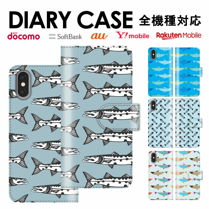 送料無料 全機種対応 iPhone15 手帳型スマホケース 手帳型 スマホケース iPhoneケース iPhone14 mini pro iPhoneSE Galaxy Xperia Google Android カバー 魚 魚群 海 川 つり 釣り フィッシング 魚釣り フィッシュ