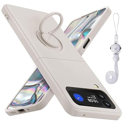 Galaxy Z Flip3 ケース リング 耐衝撃 シリコン SC-54B SCG12 カバー tpu 指紋防止 リング付き車載ホルダー対応 柔軟 軽量 落下防止 スタンド機能 滑り止め 着脱簡単 一体型 カバー ベージュ白Q08005-Z Fli