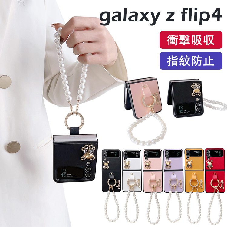 Galaxy Z Flip4 ケース 大人可愛い おしゃれ 縄掛け 飾り付け ギャラクシーZ Fli3 ケース 折りたたみ スマート 人気 折り畳み式 日常 便利 出かけ 5Gケース z flip4 ケース 落下防止 パールのチェーン 指紋防止 耐衝撃