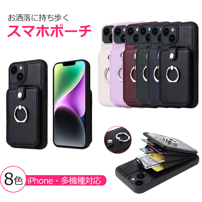 スマホケース 全機種対応 カード収納 背面携帯カバー iPhone 12 iPhone 11 iPhone 13 iphone14 iphone15 リング付きマホポーチ メンズ レディース シンプル かわいい おしゃれ 大人 可愛い 携帯 ケース 肩掛け 全機種 手帳型 全機種 スマホ対応カード入れ8色