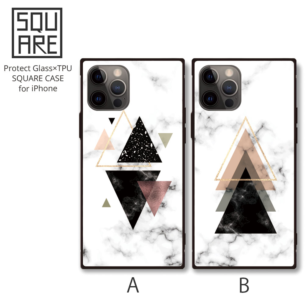 iPhone16 16e ケース 16Pro 16ProMax 16Plus ケース iPhone 15 pro iPhone14 13 12pro ケース 背面ガラス スクエア 四角 強化ガラス 軽量 おしゃれ 幾何学 マーブル marble 大理石 ジオメトリック geometric 大人 かわいい 女子