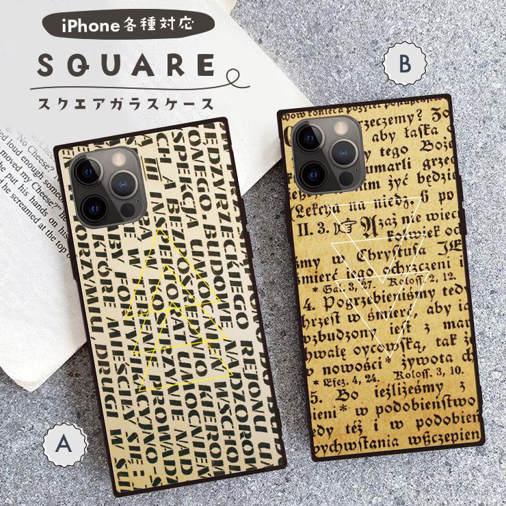 iPhone16 16e ケース 16Pro 16ProMax 16Plus ケース iPhone 15 pro iPhone14 13 12pro ケース 背面ガラス スクエア 四角 強化ガラス 軽量 おしゃれ レトロ アンティーク ビンテージ 書物 本 幾何学 ジオメトリック 大人 かっこいい メンズ