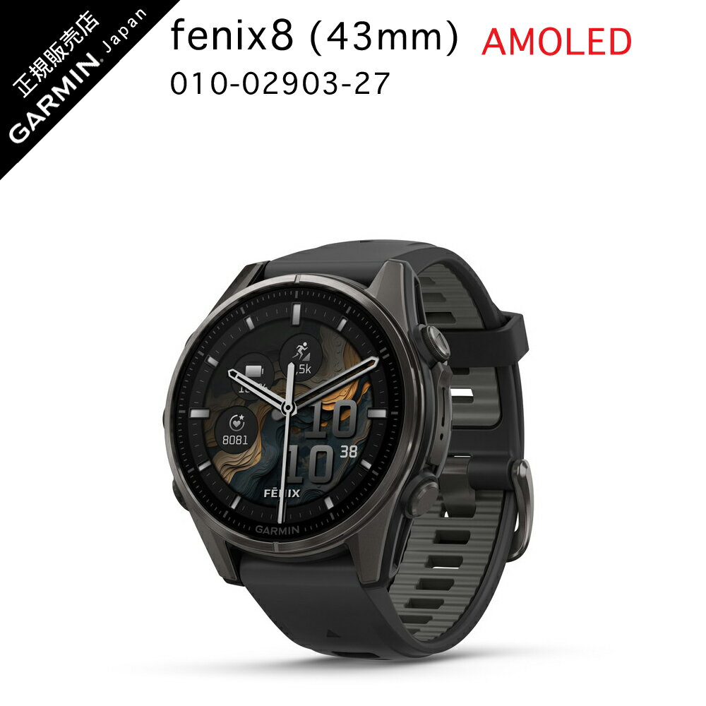 ガーミン fenix 8 Sapphire AMOLED 43mm Ti Carbon Gray DLC / Black Band010-02903-27ガーミン フェニックス 8 fenix8 GARMIN スマートウォッチ 心電 軍用規格 防水 GPS GNSS ガーミン IDA 紅葉 秋冬 ギフト