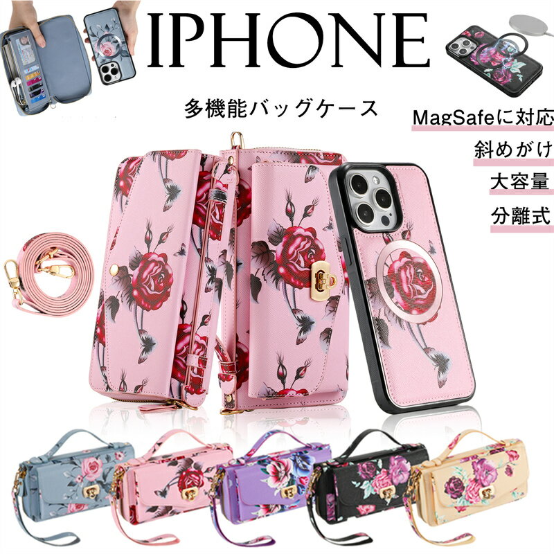 最新iPhone17シリーズ対応!MagSafe対応 iPhone 16e 14 13 12 分離式 手帳型ケース iPhone16plus ケース スマホケース iphone15 14 14pro 13 12mini カードポケット 財布ケース iPhone17プロ ケース ポーチ ストラップ付き iphone15plus 15pro 手帳 ミラー付き 花 魅力ケース