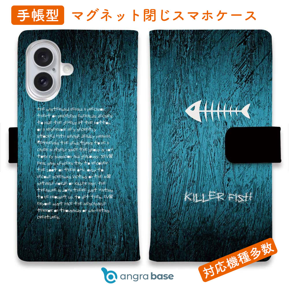 スマホケース 手帳型 カード収納 マグネット iPhone17 Pro Max iPhone Air iPhone16e iPhone16 Pro Max 16 Plus 15 Pro Max Xperia 10 VII Galaxy AQUOS ARROWS Pixel10 XL 釣り 魚 ルアー KILLER FISH