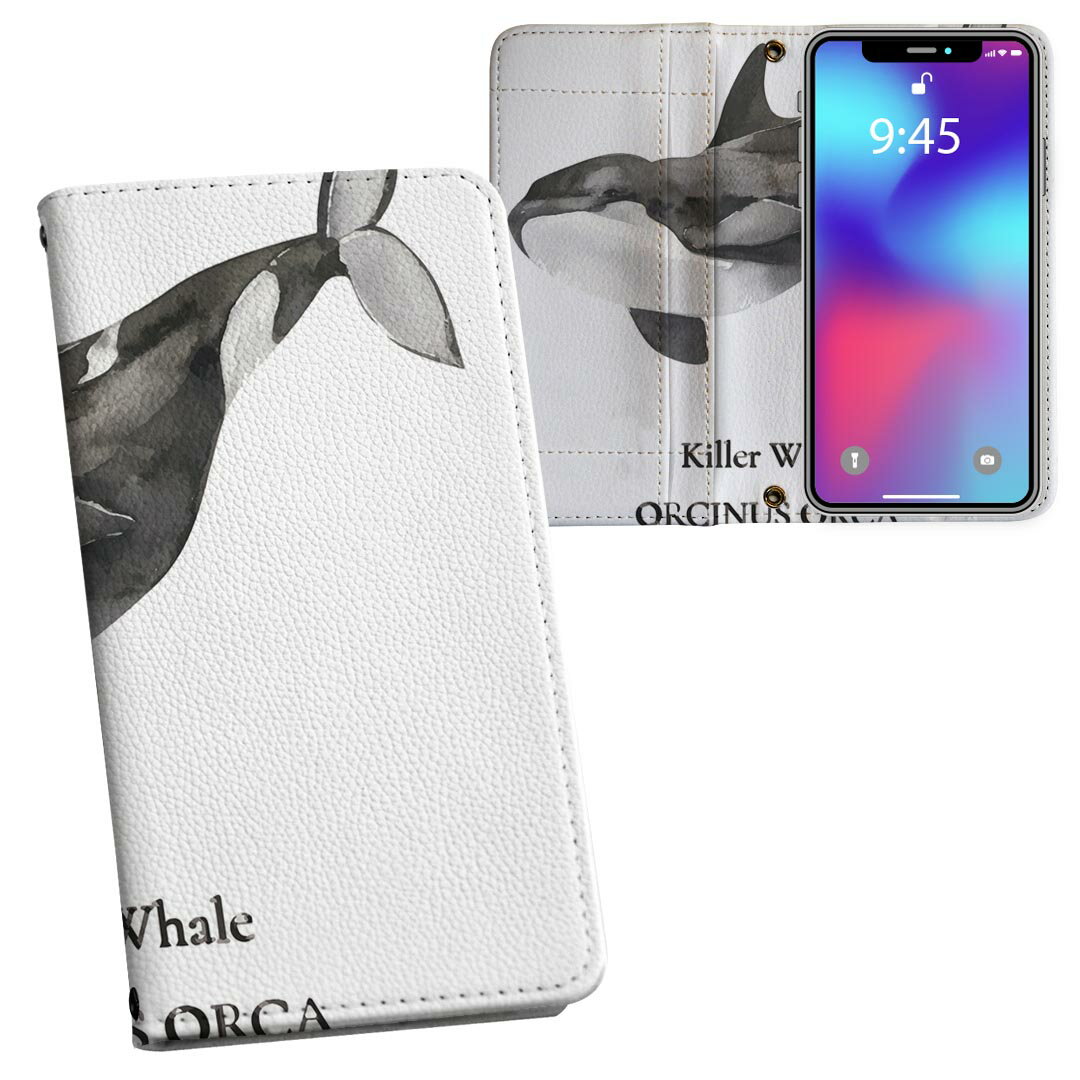 スマホケース 最新機種対応 スマホカバー 手帳型 マグネット式 フリップ ほぼ全機種対応 iPhone Xperia AQUOS Galaxy Arrows Huaweiなど ケース カバー 手帳タイプ 革 igcase 019743 デザイン 海の生物 シャチ killer whale