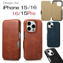 【正規品】iCARER iPhone 15/iPhone 15 Pro /iPhone 16/ 16 Pro対応機種選択 本革 手帳型 メタルクリップ オイルワックス レザー フリップ ケース マグネット吸着 保護ケース Side-open (ブラック、ブラウン、ネイビー、コーヒー(裏同色)、ブラック(裏同色))5色選択