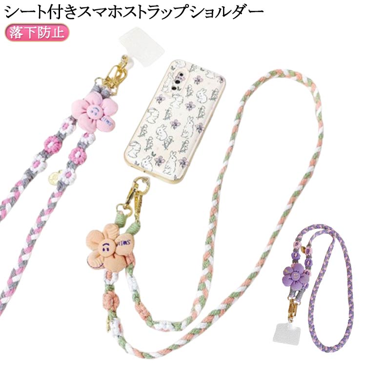 スマホストラップショルダー 定番 ネックストラップ スマホ ストラップ ショルダーストラップ シート付き 携帯 紐 ひも 斜めがけ 首かけ 肩掛け レディース おしゃれ かわいい 落下防止 花 フラワー 両カラビナタイプ 通勤 通学 アウトドア 両手が使える