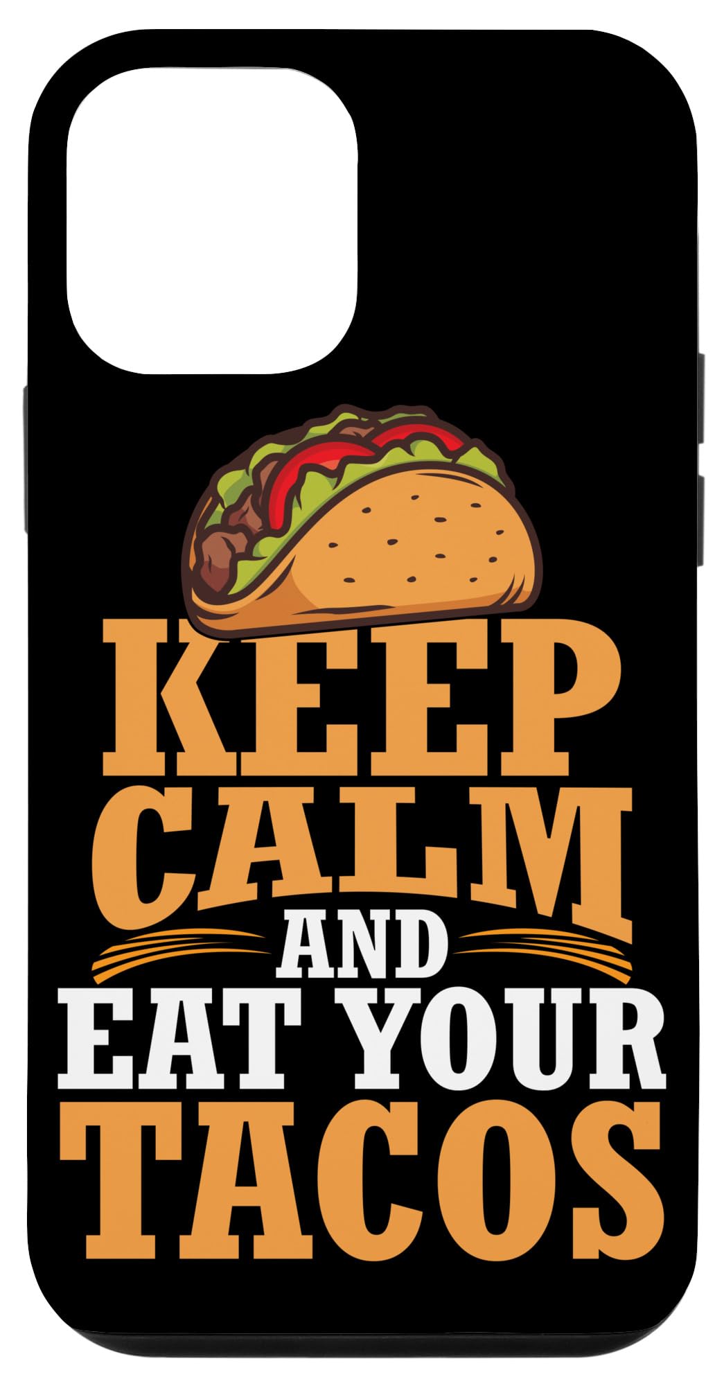 Keep Calm And Eat Tacos デザイン タコスとサルサイーター用 スマホケース iPhone 12 mini 用