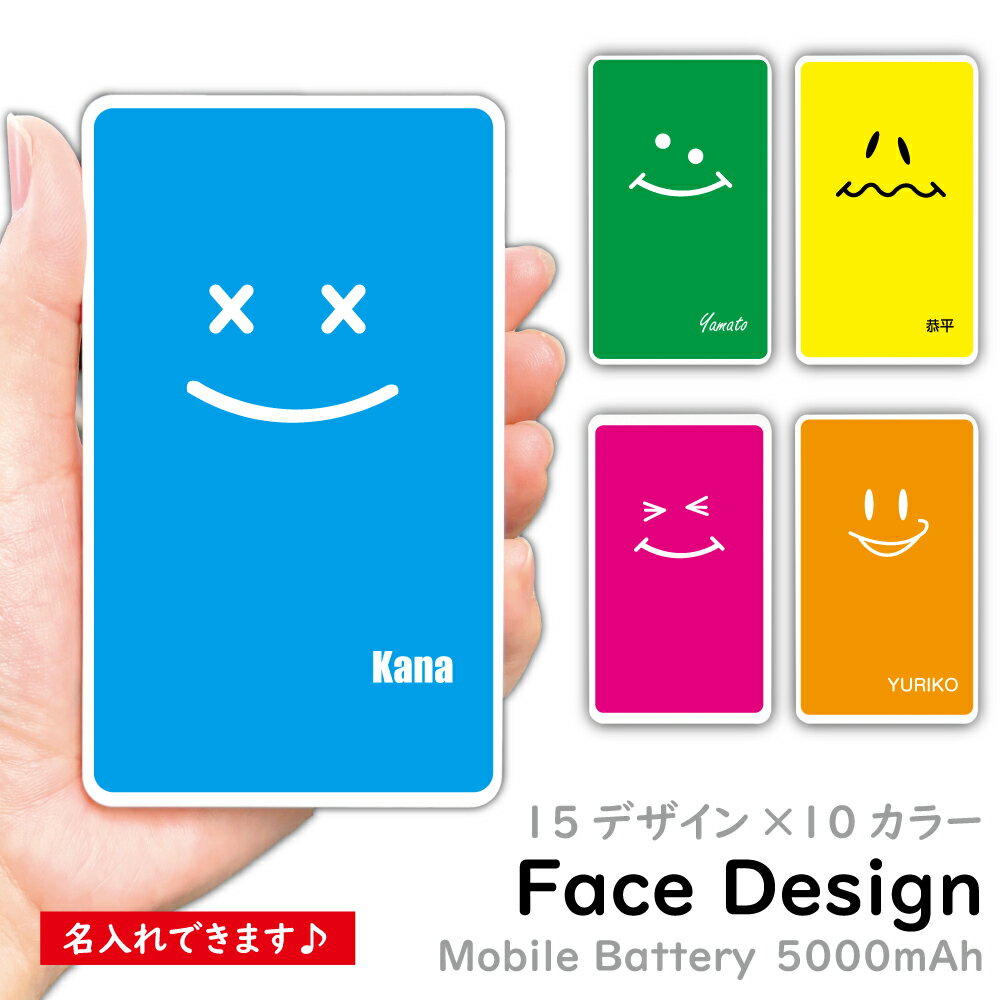 モバイルバッテリー face 顔 名入れ オシャレ かわいい おもしろい プレゼントにぴったり 選べる15デザイン 10色 カラバリ お揃いにもできます Type-C Micro-USB対応 記念品 軽量 5000mAh ギフト 贈り物 ノベルティ スマホ 充電器iPhone15 Xperia galaxy PSE認証済 iPhone14