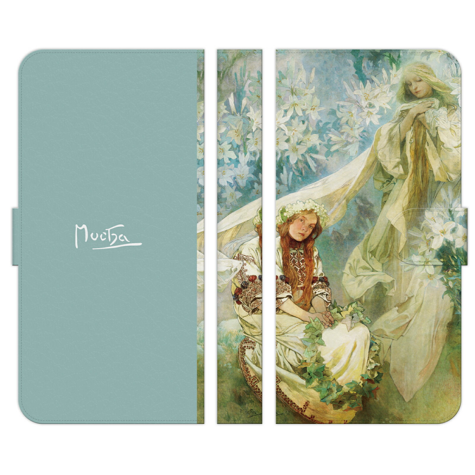 Xiaomi 各種 14T 14TPro 13T 13TPro 12 11 Lite 5G NE Redmi Note 10 JE Mi 9T 9S 手帳型 スマホ ケース カバ brains ミュシャ ユリのマドンナ madonna of the lilies alphonse mucha 版画 リトグラフ レース 人物 花 花びら 草木 花柄 アール ヌーボー アルフォンス 名作