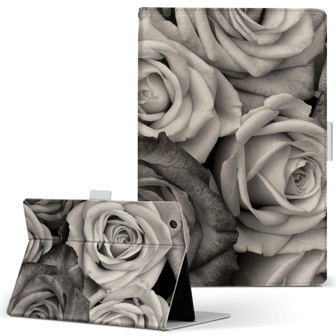 aiwa tab AB8 用 タブレット ケース JA3-TBA0801 / TBA0802 8インチ Mサイズ 手帳型 タブレットケース カバー レザー フリップ ダイアリー 二つ折り 革 023744 花 フラワー バラ セピア