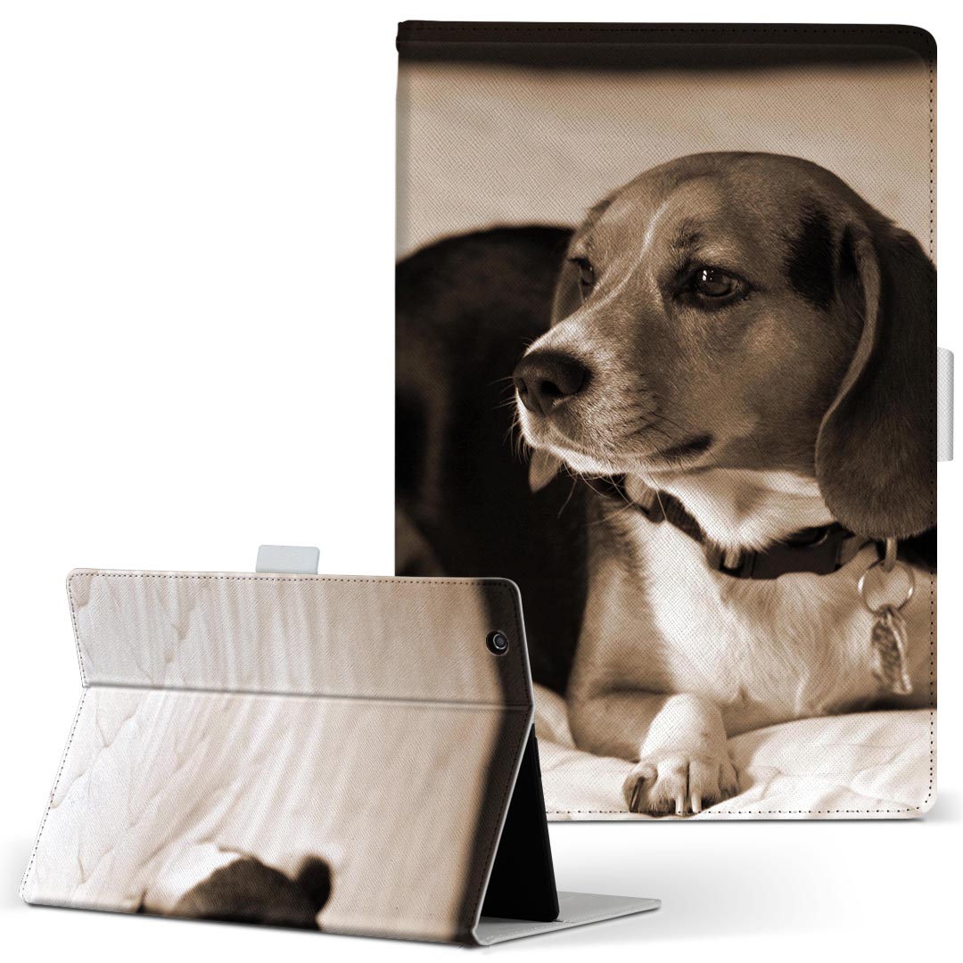 ARROWS Tab F-03G FUJITSU 富士通 ARROWS Tab アローズタブ f03g LLサイズ 手帳型 タブレットケース カバー 全機種対応有り レザー フリップ ダイアリー 二つ折り 革 008194 写真 セピア 犬