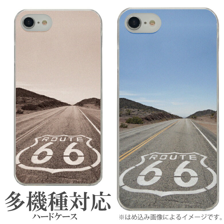 オリジナル No66 Route66 多機種に対応 クリアハードケース iPhone X iPhone7 Xperia XZ1 Galaxy AQUOS スマホケース アメリカン 道路 ルート66 写真 フォト アメカジ セピア ブルー 青 クール かっこいい オシャレ