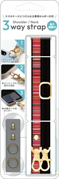 ポップなカラーがおしゃれなショルダーストラップです。付属の金具を取り付ければ、お手持ちの背面ケースがショルダータイプに変身。長さ調節機能付きで、首にかけても、肩から下げても着脱可能で使いやすい。そのまま取付け、ストラップホール用金具、充電ホール用ホルダーの3WAY仕様です。ポップなカラーがおしゃれなショルダーストラップです。 付属の金具を取り付ければ、お手持ちの背面ケースがショルダータイプに変身。 長さ調節機能付きで、首にかけても、肩から下げても着脱可能で使いやすい。 そのまま取付け、ストラップホール用金具、充電ホール用ホルダーの3WAY仕様です。