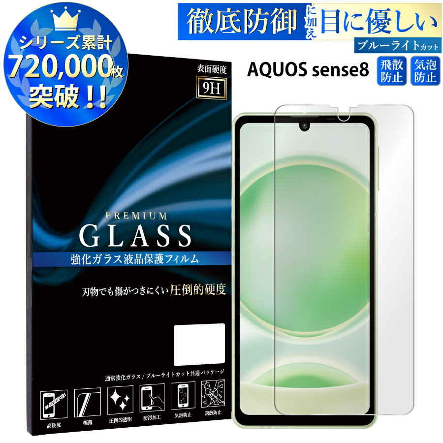 【クーポンで12%off】 ブルーライトカット AQUOS sense8 SH-54D SHG11 SH-S80 ガラスフィルム アクオス 強化ガラス保護フィルム 目に優しい 液晶保護 画面保護 TOG TJ