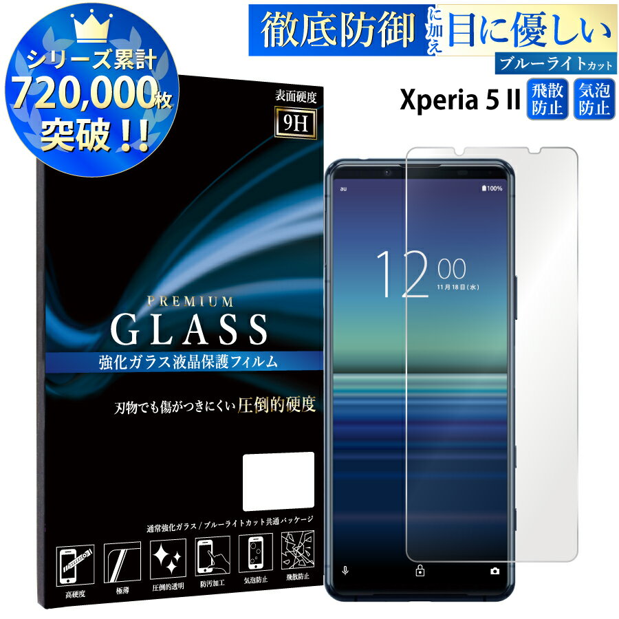 【クーポンで12%off】 ブルーライトカット Xperia 5 II SO-52A SOG02 A002SO ガラスフィルム 強化ガラス保護フィルム 目に優しい 液晶保護 画面保護 TOG TJ