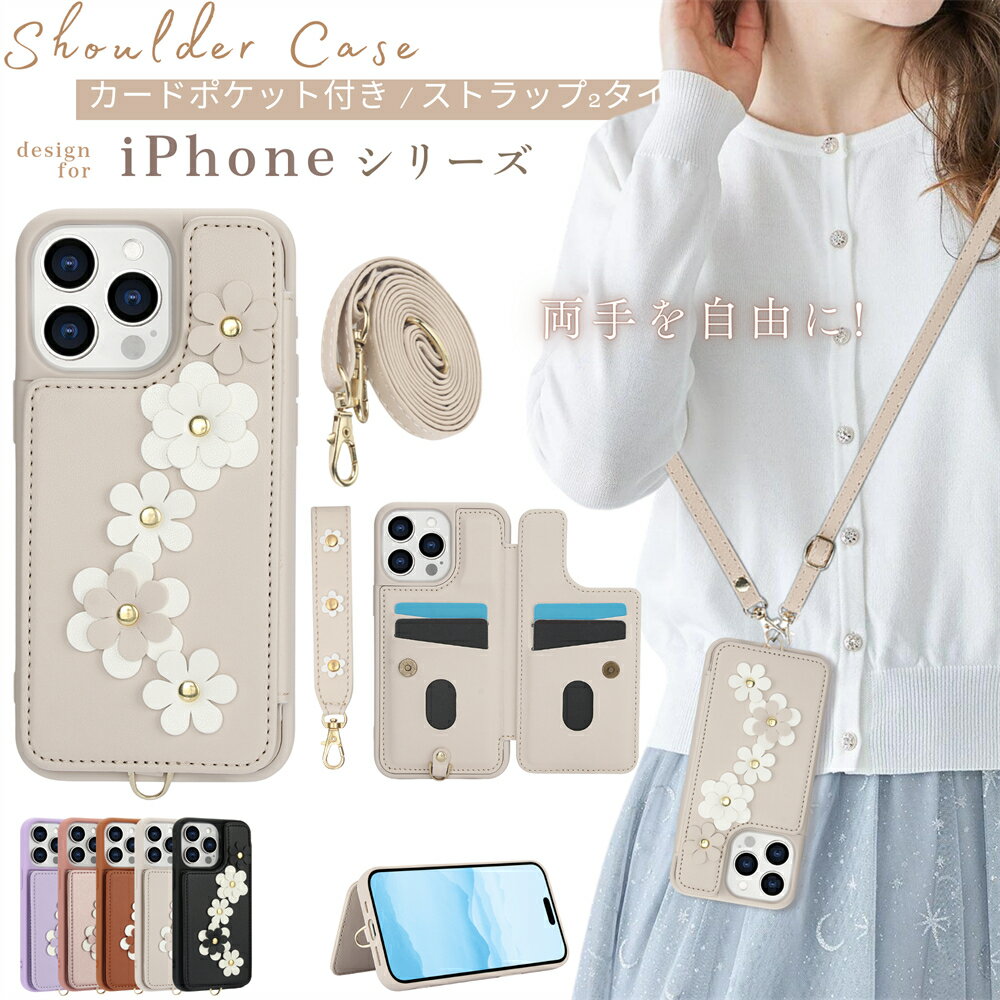 iphone17 ケース ショルダー iPhone 16 Promax ケース iPhone15 14 ケース ストラップ付き iphoneケース ショルダーストラップ iphone air 15 14 13 12 11 17 pro max plus iphone SE3 SE2 ケース おしゃれ カード収納 スマホショルダー 背面手帳 花柄 韓国 かわいい 肩掛け