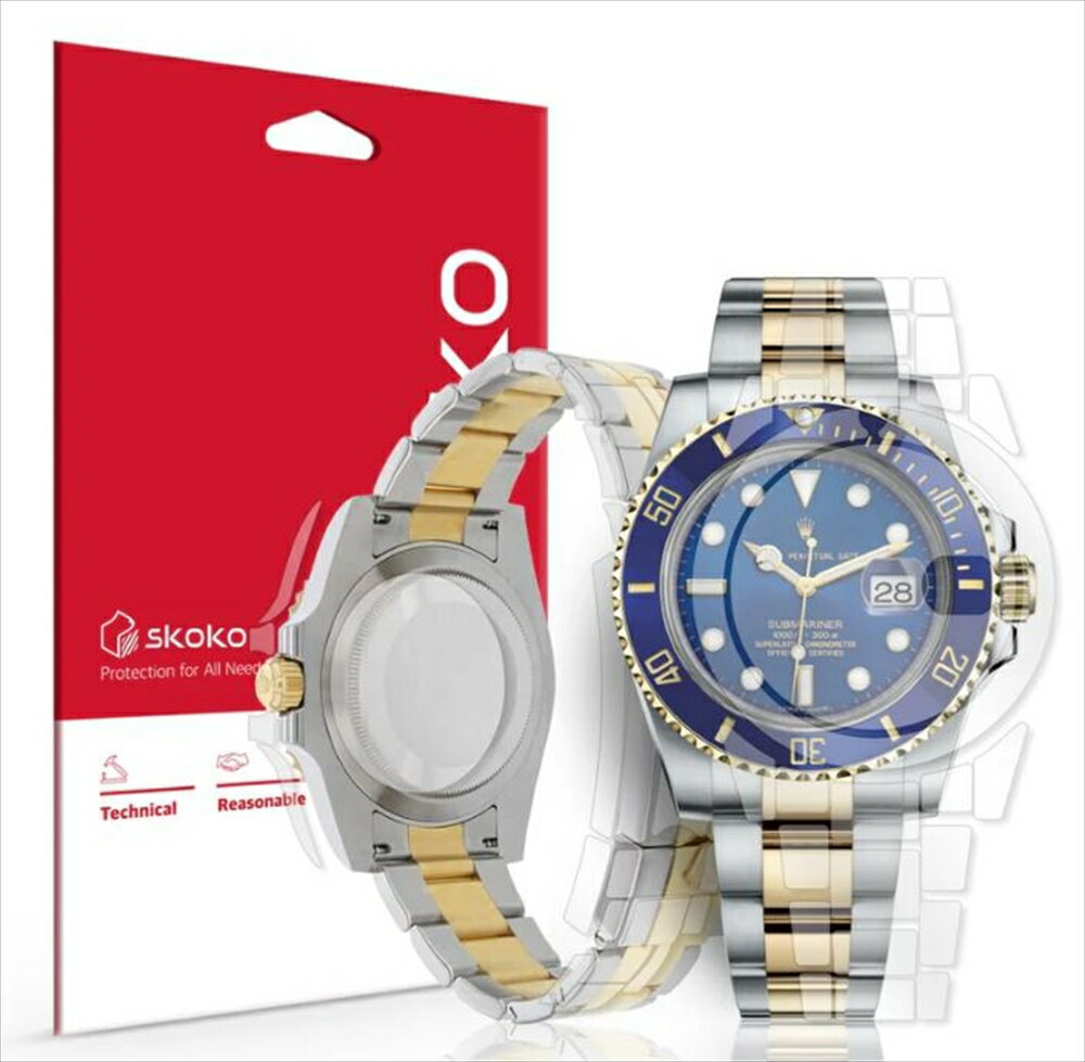 【2枚セット skoko ロレックス サブマリーナ 40mm 保護フィルム 保護シール 】スキンシール クリアタイプ 綺麗に剥がせる 貼り付け簡単 気泡が入らない 傷 防止 耐傷性 保護 フィルム 腕時計 おしゃれ メンズ レディース ベルト 本体別売り 非純正
