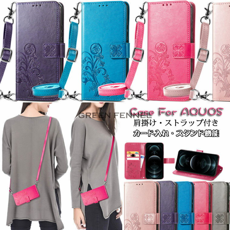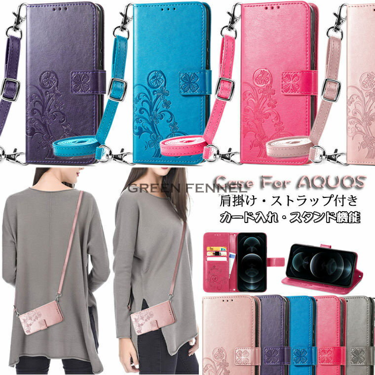 AQUOS sense6 ケース アクオス センス6 SH-54B docomo SHG05 au AQUOS zero6 ケース AQUOS ゼロ6 カバー SHG04 sense 6 zero 6 sense5G SHG03 au sense4 plus sense4 basic sense4 lite シンプルスマホ5 A001SH Softbank ケース カバー 花柄 PUレザー スマホケース 斜めがけ