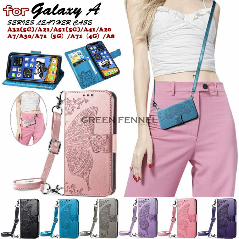 Galaxy A22 ケース SC-56B Galaxy A52 5G SC-53B ケース Galaxy A32 ケース SCG08 Galaxy A51 5G ケース SCG07 SC-54A Galaxy A21 SC-42A au docomo 手帳型 ドコモ ケース カバー スタンド機能 カード収納 蝶々 TPU PUレザー スマホケース 肩掛け 斜めがけ 首掛け 耐衝撃