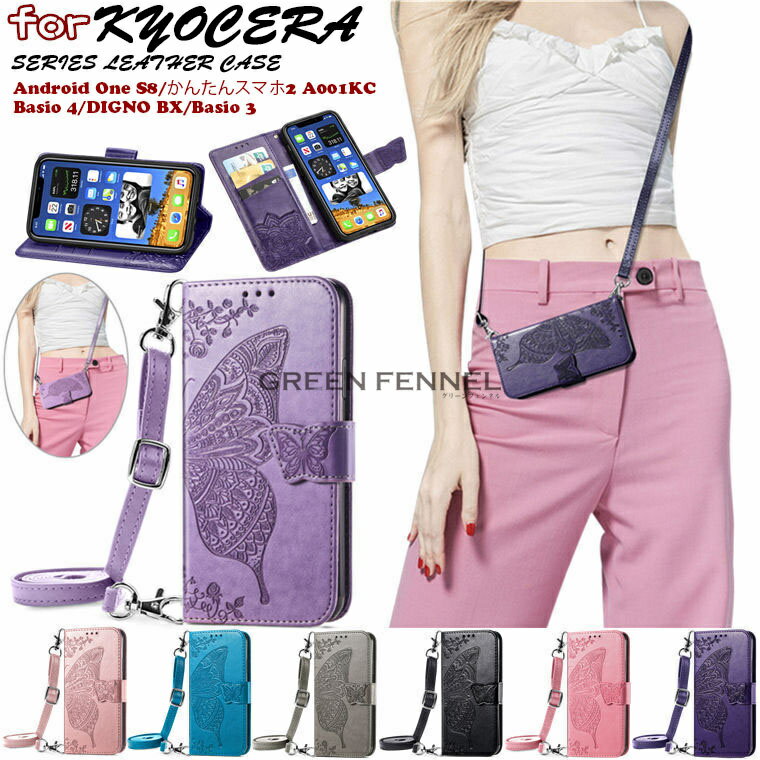 京セラ Kyocera Android One S8 ケース かんたんスマホ2 A001KC ケース Basio 4 kyv47 ケース DIGNO BX ケース Torque G04 KYV46 手帳 ケース カバー スタンド カード収納 蝶々 手帳型 革 TPU PUレザー おしゃれ かわいい スマホケース 肩掛け 斜めがけ 手帳型ケース 耐衝撃