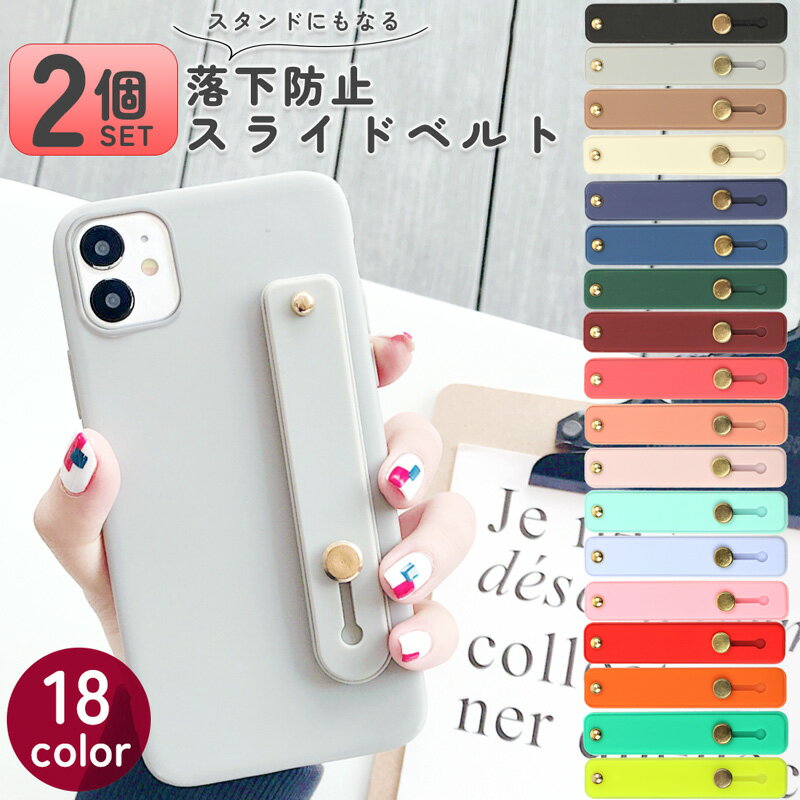 スマホベルト 2個セット iPhone 落下防止 バンド おしゃれ スマホスタンド グリップ かわいい 18色 無地 くすみカラー コンパクト スリム お揃い 友達 カップル 男女兼用 全機種対応 スマホリング