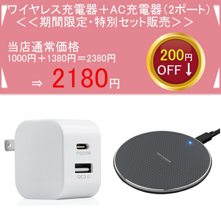 【お得セット】ワイヤレス充電器 AC充電器 ACアダプター のセット iPhone Xperia Galaxy 等のワイヤレス充電対応機種 軽量 軽い 対応 iPhone Qi 充電 ワイヤレスチャージャー 商品説明 ■商品名 :お得 ワイヤレス充電+AC充電器2ポート ■対応機種:iPhone,galaxy,Xperia等ワイヤレス充電対応機種 ■カラー:ブラック(ワイヤレス充電器)、ホワイト(AC充電器) ■注意事項:モニターの発色の具合によって実際のものと色が異なる場合があります ■保証期間 商品到着後、30日間は当店オリジナル保証を付きます。注文番号が保証書の代わりとなります。 商品到着後30日以内にレビューを投稿いただきますと延長保証いたします。商品到着後、1年間の延長保証となります。 保証は通常使用に対しての保証となります。落下、破損、火災、水漏れ等は保証外となります。 ■お得なセット内容 ワイヤレス充電器およびハイパワーなAC充電(Type-C 1ポート、USB 1ポート)でスマホライフを強力にサポート! セットで購入すれば200円引きで購入できます! 1)ワイヤレス充電器(当店販売価格:1,000円) ⇒シンプルでコストパフォーマンスの高いワイヤレス充電器 コンパクトで持ち運びにも便利なスタンダードなモデル 楽天ランキングで1位獲得!! 2)AC充電器(当店販売価格:1,380円) ⇒2ポート搭載の急速充電器となります。最近のiPhoneにはAC充電器が付属しておりません。 初めてスマートフォンを購入される場合には必須のアイテムとなります。 USB Type-C出力端子を1つ備えており、急速充電に対応しております。 ↓↓お得なセット販売はこちら↓↓↓↓各商品の詳細は画像をクリック↓↓ 【お得セット】ワイヤレス充電器 AC充電器 ACアダプター のセット iPhone Xperia Galaxy 等のワイヤレス充電対応機種 軽量 軽い 対応 iPhone Qi 充電 ワイヤレスチャージャー 商品説明 ■商品名 :お得 ワイヤレス充電+AC充電器2ポート ■対応機種:iPhone,galaxy,Xperia等ワイヤレス充電対応機種 ■カラー:ブラック(ワイヤレス充電器)、ホワイト(AC充電器) ■注意事項:モニターの発色の具合によって実際のものと色が異なる場合があります ■保証期間 商品到着後、30日間は当店オリジナル保証を付きます。注文番号が保証書の代わりとなります。 商品到着後30日以内にレビューを投稿いただきますと延長保証いたします。商品到着後、1年間の延長保証となります。 保証は通常使用に対しての保証となります。落下、破損、火災、水漏れ等は保証外となります。 ■お得なセット内容 ワイヤレス充電器およびハイパワーなAC充電(Type-C 1ポート、USB 1ポート)でスマホライフを強力にサポート! セットで購入すれば200円引きで購入できます! 1)ワイヤレス充電器(当店販売価格:1,000円) ⇒シンプルでコストパフォーマンスの高いワイヤレス充電器 コンパクトで持ち運びにも便利なスタンダードなモデル 楽天ランキングで1位獲得!! 2)AC充電器(当店販売価格:1,380円) ⇒2ポート搭載の急速充電器となります。最近のiPhoneにはAC充電器が付属しておりません。 初めてスマートフォンを購入される場合には必須のアイテムとなります。 USB Type-C出力端子を1つ備えており、急速充電に対応しております。 ↓↓お得なセット販売はこちら↓↓