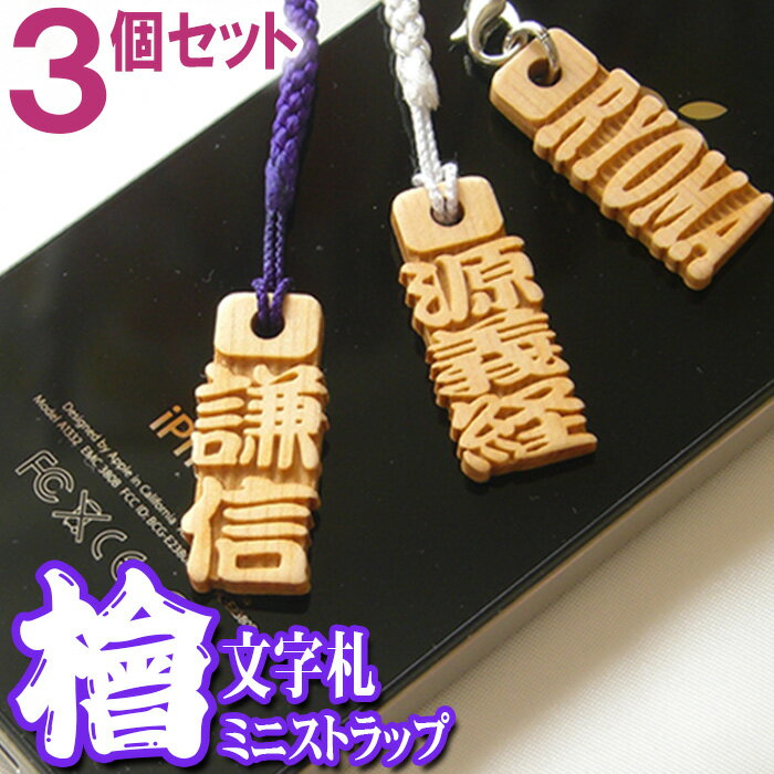 千社札風 ミニ ストラップ アガ文字札3個セット strap 木製 名前入り 木札 ネームプレート ネームタグ スマートホン 木彫り スマホ 名入れ 作成 刻印 プレゼント ギフト 名札 キーホルダー かわいい おしゃれ 名前入れ 文字入れ かっこいい 記念品 父の日 お中元