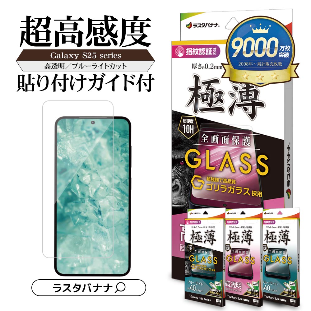 Galaxy S25 SC-51F SCG31 Galaxy S25 Ultra SC-52F SCG32 ガラスフィルム 全面保護 高透明 高光沢 ブルーライトカット ゴリラガラス採用 0.2mm 硬度10H 指紋認証対応 簡単貼り付け ギャラクシー ウルトラ 保護フィルム ラスタバナナ