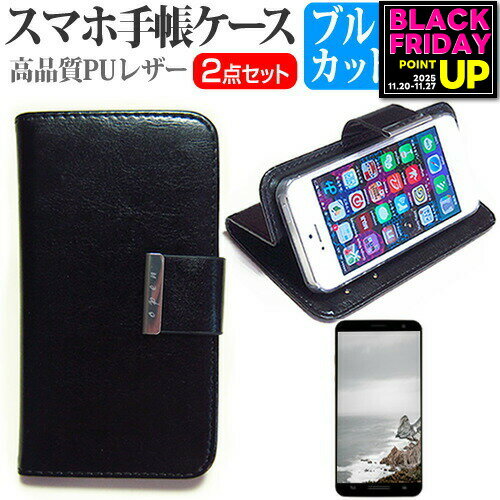 P-UP World Mode1 Grip [5インチ] ケース カバー 手帳型 レザー シンプル ケース スマホケース 黒 と ブルーライトカット 液晶保護フィルム セット メール便送料無料 jgs bgt 互換品