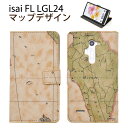 手帳型 isai FL LGL24 VL LGV31 ワールドデザインケースポーチ 地図柄 au エーユー イサイ スマートフォン 手帳型 スマホカバー LGエレクトロニクス 横開き 二つ折り ダイアリーケース