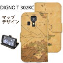 手帳型 DIGNO T 302KC用ワールドデザインケースポーチ ジーンズデザイン 地図柄 京セラ Y!mobile ワイモバイル スマートフォン用カバー 手帳型 スマホカバー ディグノ PC 横開き 二つ折り