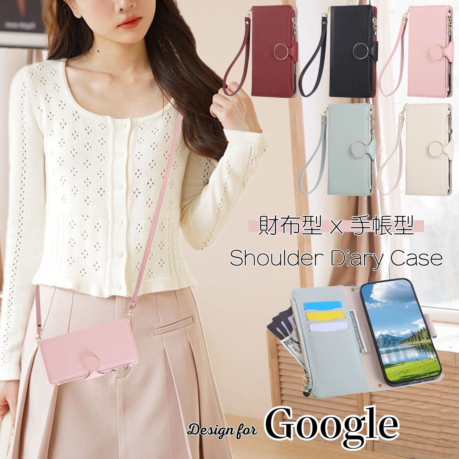 2つストラップ付き GooglePixel9 9A グーグルピクセル 8A 10 8pro スマホケース Google Pixel9a Pixel8a 9 8 10 6 A pro XL 手帳型ケース ショルダーストラップ Pixel10 pro ピクセル9プロ ピクセル9A Google Pixel 9 8 7 6 A ケース 手帳型 小銭入れ カード入れ 大人可愛い