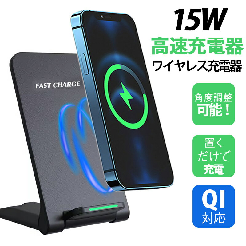 即納!ワイヤレス充電器 15w iPhone 15 14 13 12 Andriod 置くだけ 充電スタンド 充電器 ワイヤレスチャージャー Qi急速充電