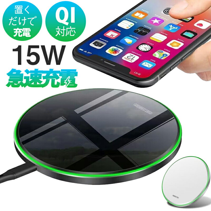 ワイヤレス充電器 iPhone 15 14 充電プレート Andriod 置くだけ 15w 多機種対応 充電器 ワイヤレスチャージャー Qi急速充電