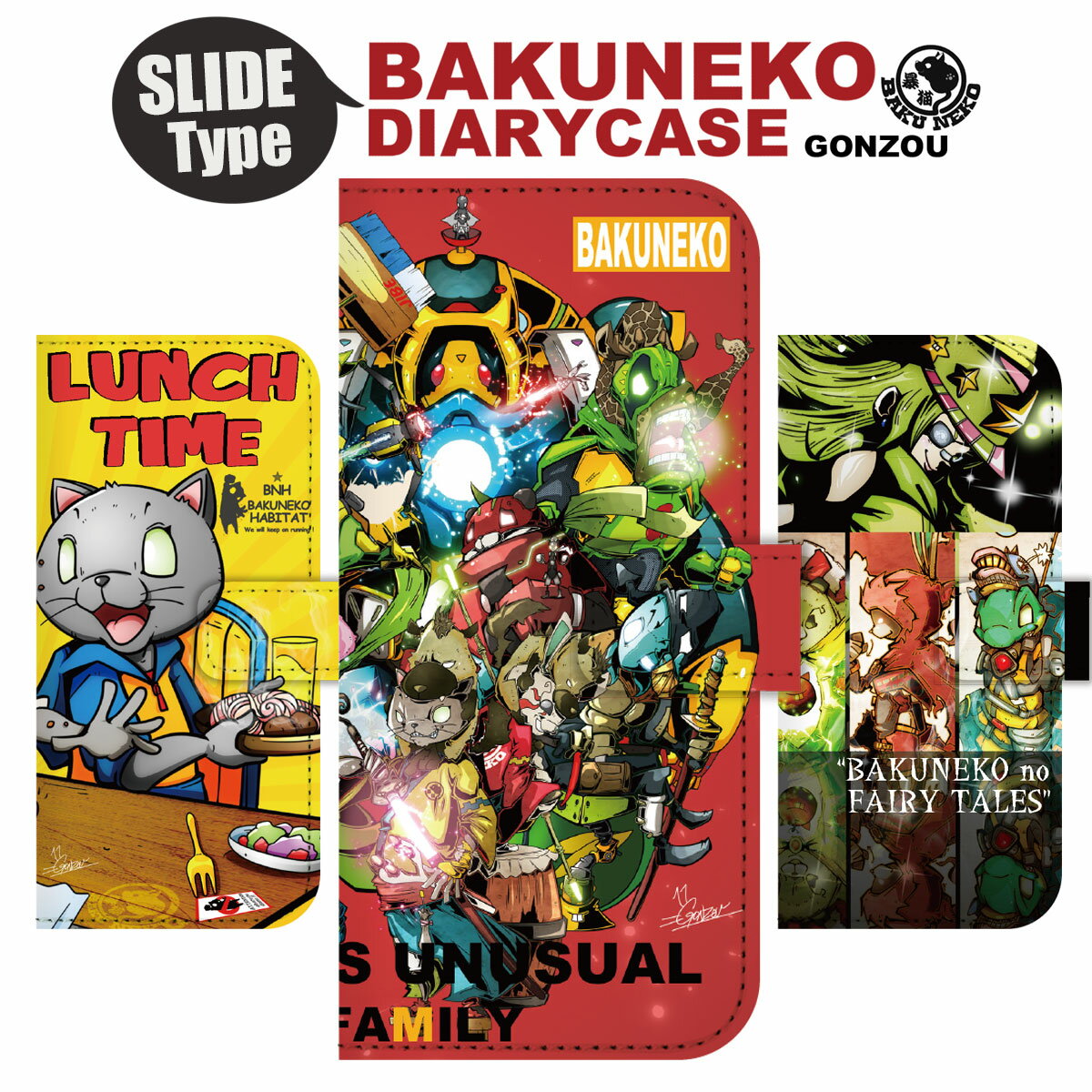 スマホケース 手帳型 全機種対応 ケース カバー スライド式 iPhone16e 14 13 12 11 X XR XS 8 7 6 5 SE mini Pro Plus ProMax AQUOS ARROWS Xperia Galaxy Google Pixel Android OPPO HUAWEI ねこ GONZOU pre-005