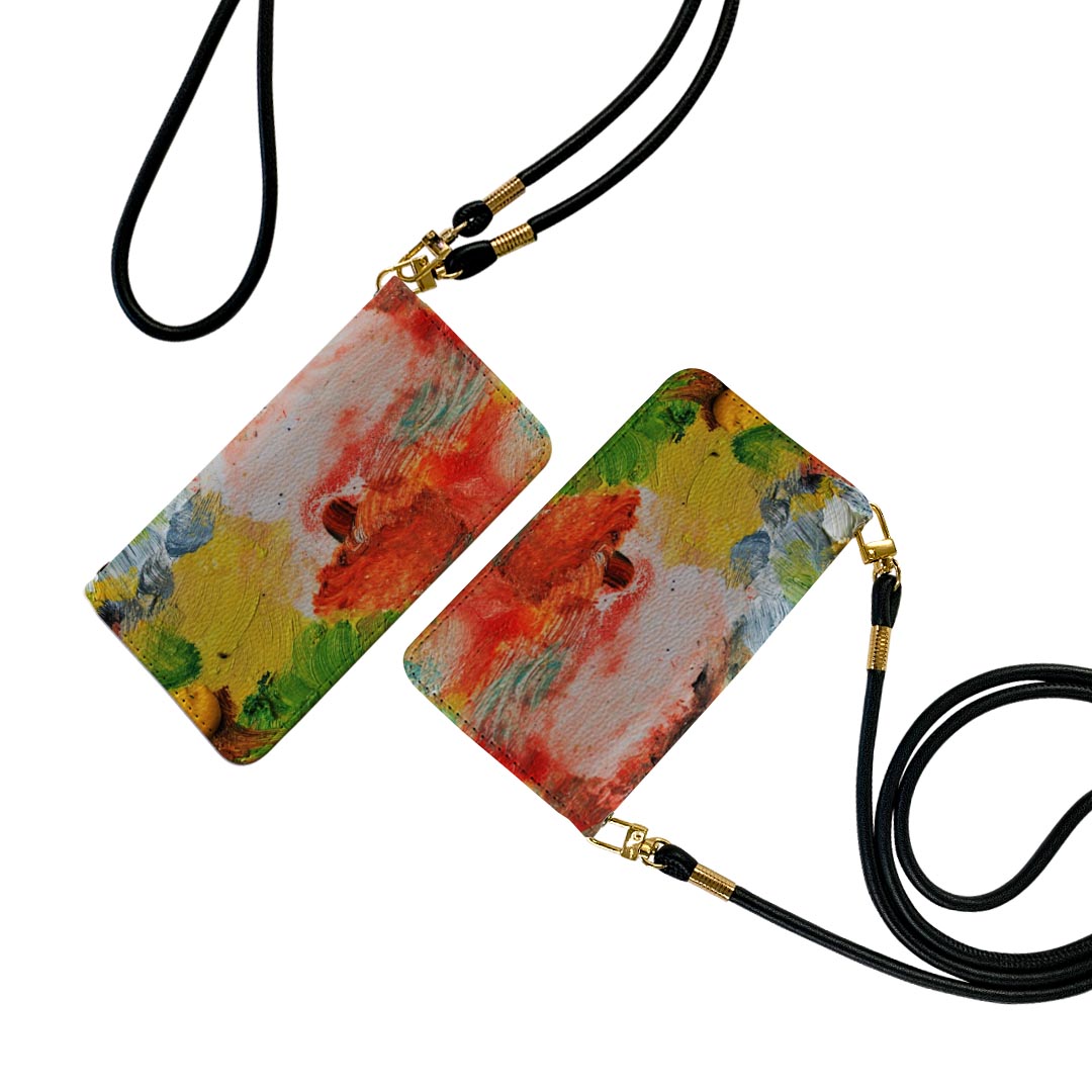 iPhone11 6.1インチ ストラップ付き iphone11 ケース ショルダー スマホ 落下防止 手帳型 マグネット式 ピタッと閉まる スマホカバー 肩掛け 斜めかけ 023640 絵具 カラフル