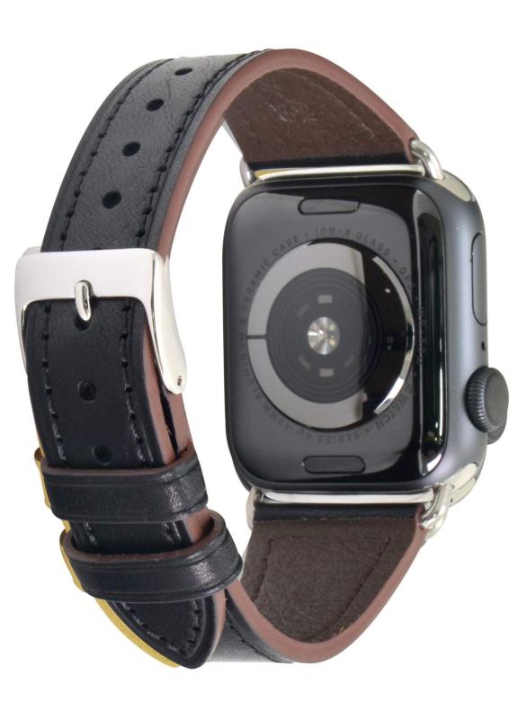 [Kurocurrant] クロカラント AppleWatch用(アップルウォッチ用) 3,2,1用 42mmケース用 牛革 スリムモデル イタリアンレザーベルト シルバーパーツ アンティークブラック X3507ITLAPO119S024