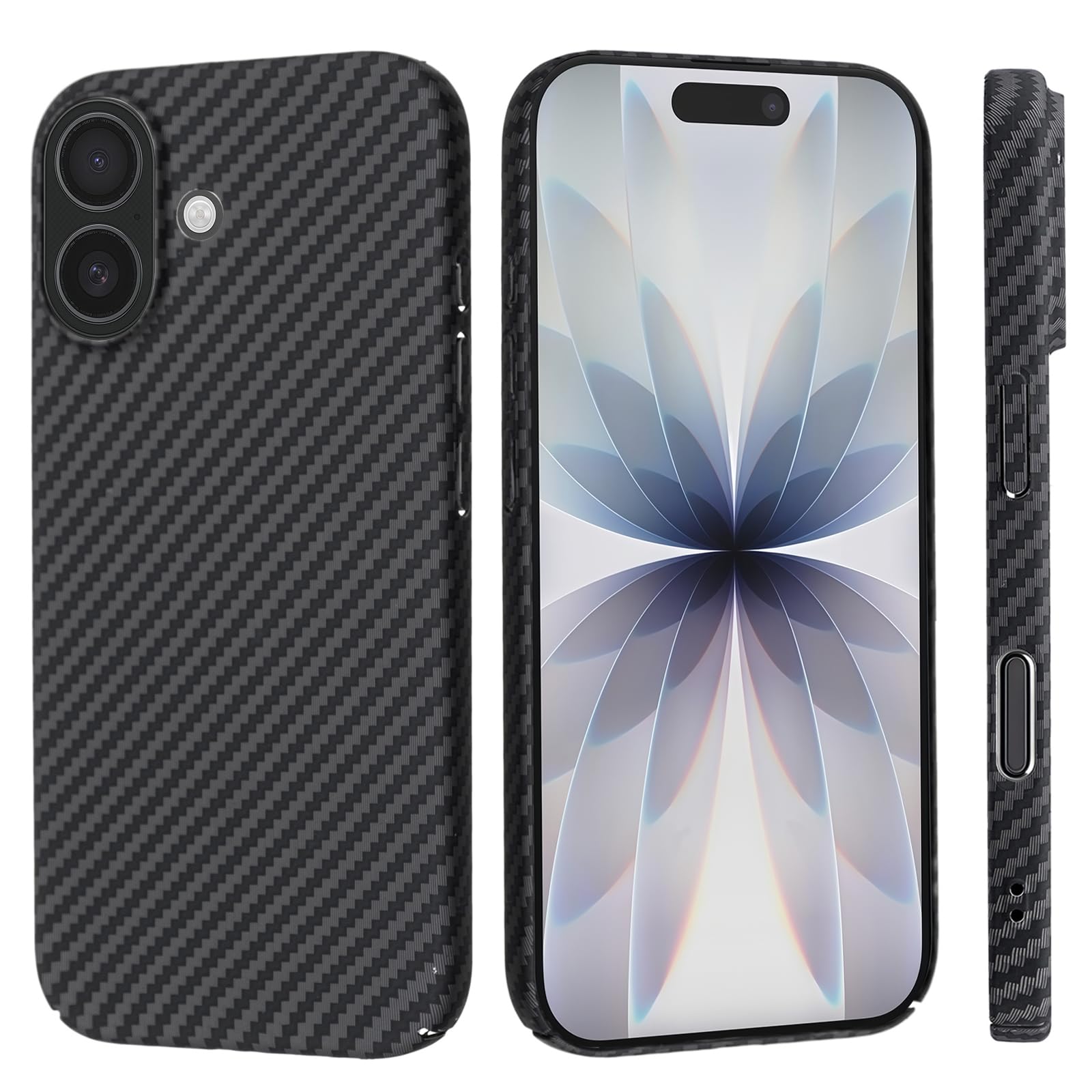 【 Agaiy 】ケースiPhone16PLUS用 アラミド繊維 薄型 耐衝撃 超軽量(ブラック)アイフォン16プラス 高級なカーボン風 スマホカバー 指紋防止 全面保護カバー iPhone16plus 黒