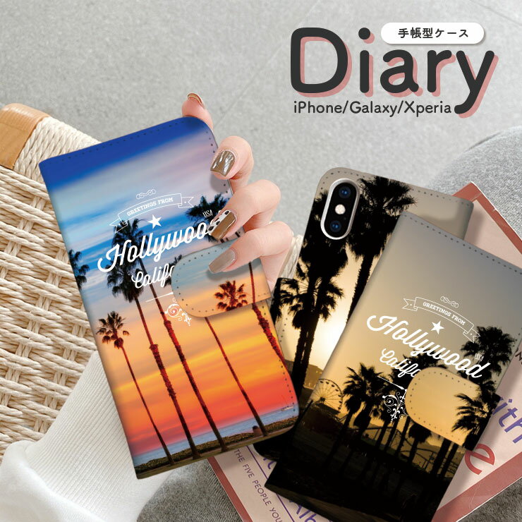 Galaxy S25 S24 S23 Ultra A545G A53 S22 A22 A23 Ultra 手帳型 Galaxy SC-51F SCG31 SH-51A SC-51B SCG10 ケース 手帳 カバー ギャラクシー スマホケース メンズ カリフォルニア ハリウッド ビーチ パームツリーcarifornia beach palmtree Hollywood photo