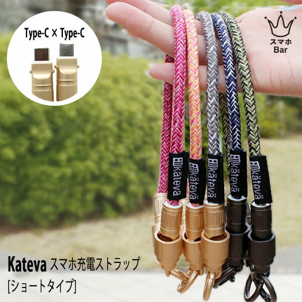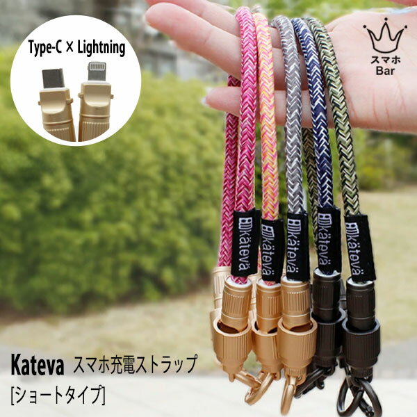 Kateva カテバ スマホ充電ストラップハンドタイプ 30cm ストラップ 充電ケーブル データ転送 写真 画像 ハンドタイプ おしゃれ 充電 ロープ type-c ライトニング 急速充電 タイプC ストラップ式 2WAY 紛失 落下防止 iPhone android 旅行 普段使い【メール便送料無料】