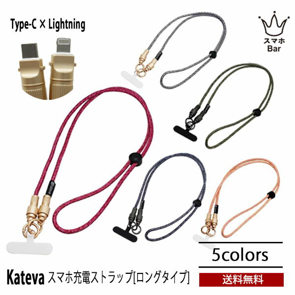 Kateva カテバ スマホ充電ストラップ ショルダータイプ|スマホストラップ 充電ケーブル 2way 給電 データ転送 タイプC ライトニング iPhone Android スマートフォン 携帯アクセサリー 旅行 出張【メール便送料無料】【DM】