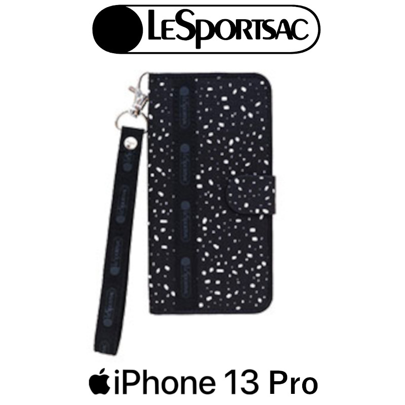 \2月限定エントリーでP10倍/iPhone 13 Pro用 LeSportsac ロング&ハンドストラップ付きブックタイプケース Barre Noir R21C085K アイホン アイフォン アイフォーン Apple アップル