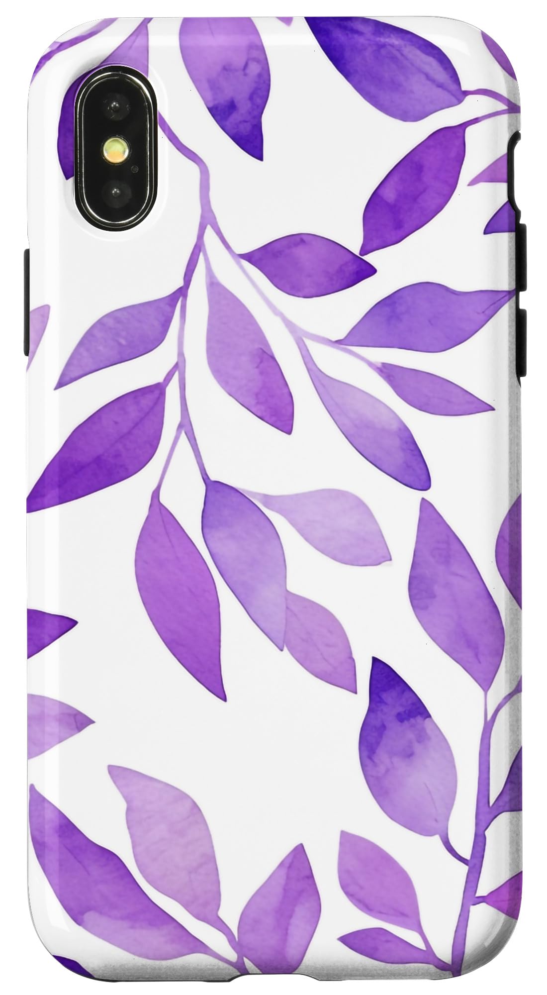 iPhone X/XS 花柄 ボタニカル ラベンダー 葉 スマホケース