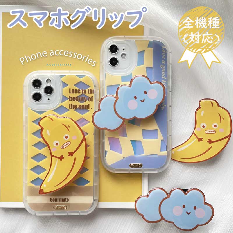 スマホグリップ 可愛い バナナ 雲 スマホホルダー 韓国 スマホスタンド 単体 おしゃれ グリップスタンド 落下防止 スタンド機能 携帯リング スマホリング スマホスタンド スタンド アクセサリー プチ ギフト プレゼント グッズ 階段式 イエロー