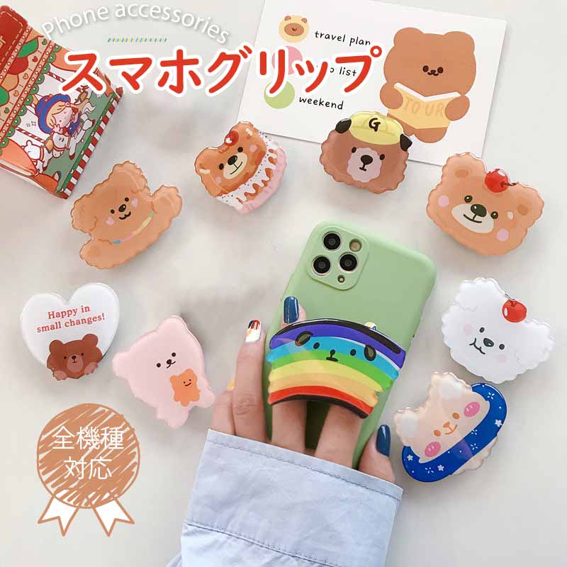 スマホグリップ くま かわいい 虹 韓国 おしゃれ 女の子 単体 スマホアクセサリー スマホホルダー 落下防止 スマホリング スタイリッシュ プレゼント ファッション cute 携帯リング グリップスタンド グッズ スマホスタンド プチ ギフト 階段式